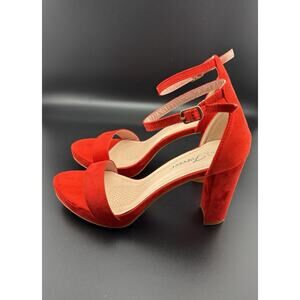 Gorgeous Forever red ankle strap heels, brand new in box. Soft faux suede material with a sturdy block heel and open toe design. Perfect for weddings, proms, or holiday parties.