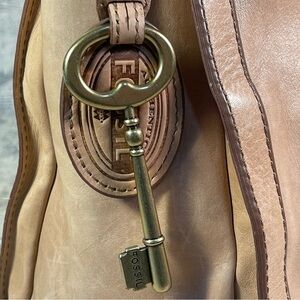 Fossil Reissue Bag Vintage Leather Weekender Satchel Key Charm