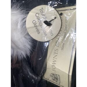 Fownes Brothers Lord & Taylor Black Leather Gloves Rabbit Fur Pom Touchscreen NWT
