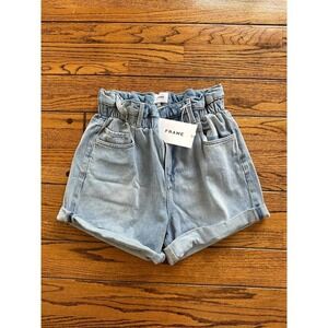 • 85% cotton, 15% recycled cotton • Made in Turkey • Machine wash • Zip fly with hook and bar closure • Elastic paperbag waist • 5-pocket design • Optional cuff • Shorts measure approx 13" in length