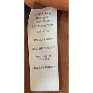 Brand new with tags Frame suede snap-front mini skirt in rich Carmelo brown. Women’s size 27. Made from luxe 100% leather suede with side pockets and button detailing. A-line silhouette with subtle western and equestrian vibes—perfect with tall boots, vintage tees, or a blazer. Rare and sold out.