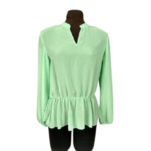 Francesca’s Collection Polka Dot Peplum Green Blouse Size Large