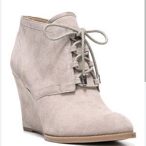 "NEW" Fantastic Tan Suede Bootie By Franco Sarto. Lace Up with Inside Zip Entry, Cushioned Foot Bed, Rubber Soles, Wrapped 3.5" Wedge Heel, Almond Toe, New, Never Worn, Only Tried On:) Rt.140.00 approx.