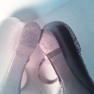 Franco Sarto Faux Snakeskin Wedged Sandals. Peep toe. Scuffs on the wedge of both shoes. The edging of the front of one of shoes has wear. The right shoe the strap with the buckle is a little stretched. Gently used.