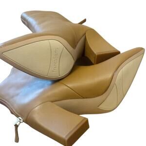 Franco Sarto Leather Venture Bootie Pointed Toe Beige Size 6.5M NWOB