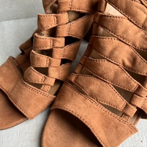 Franco Sarto Rust Orange Suede Open Toe Cone Heel Ankle Strap Size 8.5 GRADY