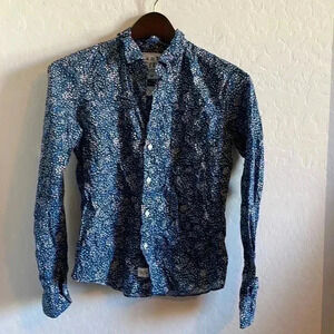 A pretty floral print decorated this modern button-up shirt crafted from pure cotton in a tailored fit.