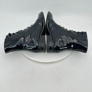 Freda Salvador Women Size 7.5 Black Patent Leather Plain Toe Lace Up Ankle Boot