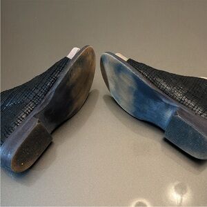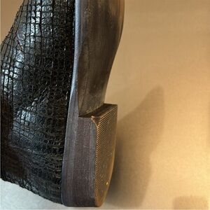 Stylish black Free People open-toe leather sandals. Perfect for casual outings. FP MONT BLANC ASYMMETRICAL SNAKEPRINT SANDALS.. Size 36 has some minor wear in great condition..