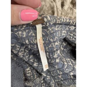 Free People Boho Smocked Wide-Leg Jumpsuit XS Blue Beige Floral Tie Straps