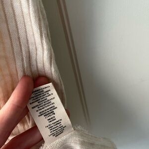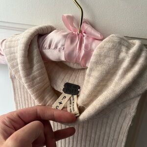 Sleeveless, ribbed knit turtleneck with a hi-low hem.