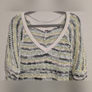 Free People Colorful Slouchy Open-Knit V-Neck Sweater Comfy Casual.