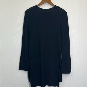 Free People - Criss Cross Black Linen Blend Slit Sides And Sleeves Sweater Small