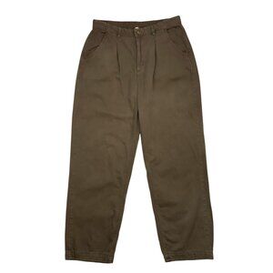 This Free People women's Cya Later Skate Trouser Pants makes a statement due to it's pleated front, mid rise, straight tapered leg, pockets, belt loops, zip fly with button and olive brown shade.