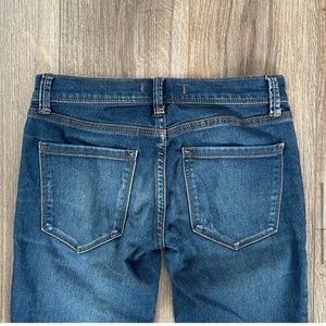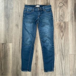 Free People Mid-Rise Blue Denim Stretch Skinny Jeans. Gently pre-loved. No flaws or thinning. Size 24. Button and zipper fly.