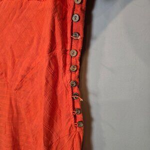 Free People Catch the Light dress in peachy orange. Good pre-owned condition, there are two loops that go around the buttons on the side that need to be resewn, pictured.