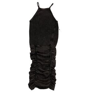 Free People FP One XS Katya Thermal Halter Style Bodycon Mini Dress Brown Textured Ruched Fitted Ribbed Thermal Stretchy Skirt NWOT Party Streetstyle Trendy Chic Grunge