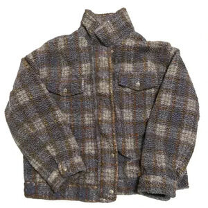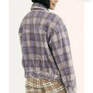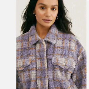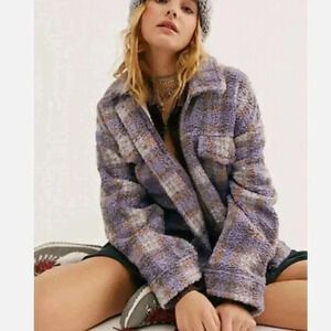 Free People Faded Dreams Cozy Trucker Jacket Sherpa Plaid Medium coat purple