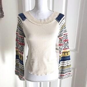 Ivory Thermal knit sweater with a printed design and crew neckline. Fit: this style fits true to size. - Crew neck - Long sleeves - Thermal knit construction - Print design - Approx. 20-21”length/ Bust 16.5”