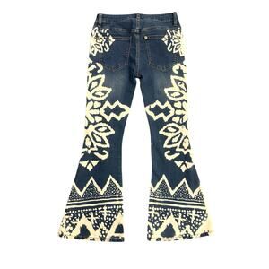 Make a bold statement with these Free People flare jeans featuring a striking cream-and-navy embroidered/printed boho pattern. With a high-rise fit and dramatic flared leg, these jeans embody Free People’s signature festival, retro-inspired style. Perfect for pairing with boots, sandals, or a cropped sweater for that effortlessly cool look.