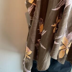 Flowy camisole with floral print. Features olive green base with yellow and pink accents. Perfect for layering. Prairie, boho, bohemian, cottagecore, hippie, granola girl, flower child, cabincore