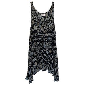 Free People Floral Print Lace Cutout Ruffle Sharkbite Hem Dress Size Extra Small
