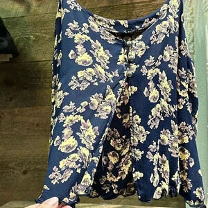 Free People Flowing Floral Tank Top – Open Back – Size M – Navy Blue