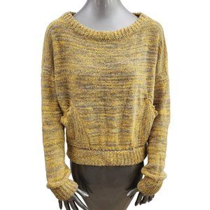 Free People Gold Sweater Small Yellow Grey Pockets Longsleeve Top