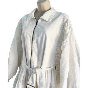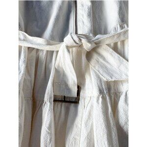 Free People Hampton Mini Dress. Dress is done in a light cream or ivory color. It has a zip up front and belted waist. Dress is made of 100% cotton and is a woman's size large. Org. list price $168. Sold out on REVOLVE.