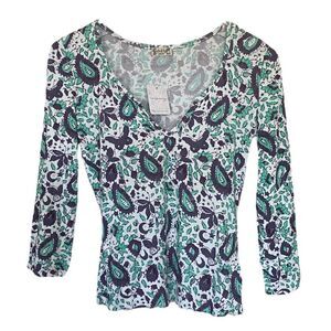 Free People Intimately butterfly paisley print 3/4 sleeve v-neck top.