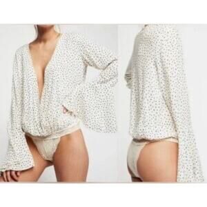 Free People Intimately Polka Dot Deep V Bell Sleeve Bodysuit boho coastal sz M