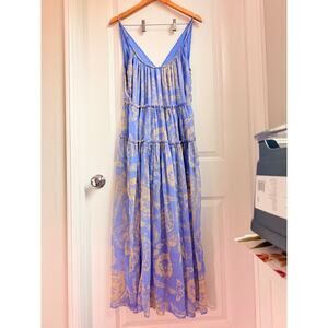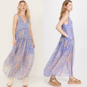 Free People Julianna Maxi Dress CHIFFON $168 XS Blue Boho Floral Sheer Lagenlook
