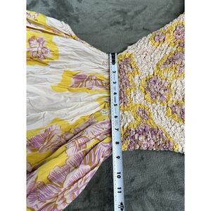 Free People Kalimantan Printed Midi Dress Bold Floral Ruched Blush Yellow Medium