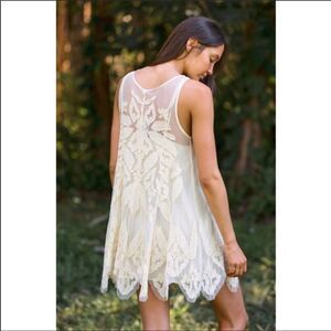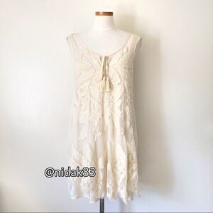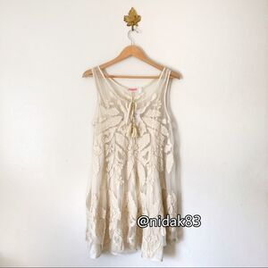 Free People La Palma Trapeze Mini Semi Sheer Dress NWT Large boho RARE