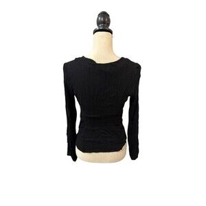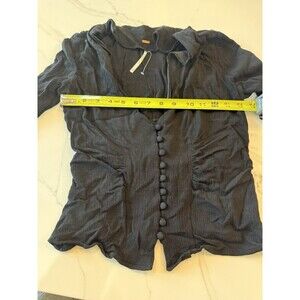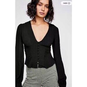 Free People Maise Top Black Size Medium Puff Shoulder Ruched Semi-Sheer NEW