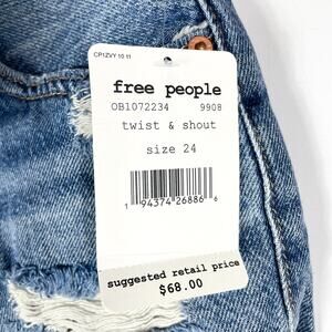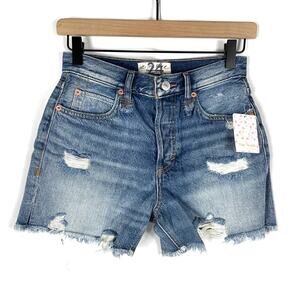 Free People Makai Cutoff Shorts Blue Frayed Denim Distressed We The Free Sz 24