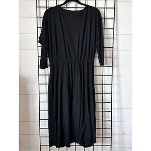 Free People Maxi Ruched Dress Womens M Black V-Neck Drawstring Baggy