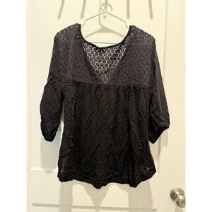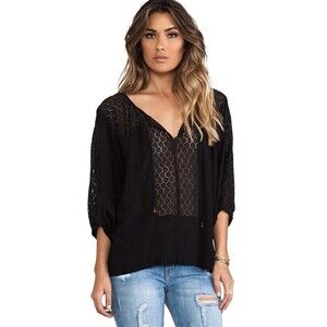 Free People Moon River Easy Top Size Small Black Daisy Lace Peasant Blouse