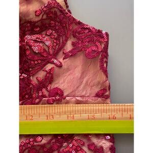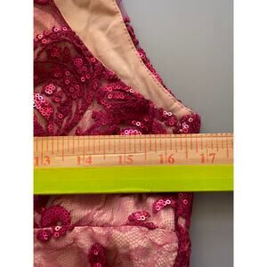 Free People Night Shimmer Raspeberry Sequined V Neck Mini Dress Size 8