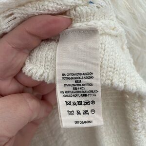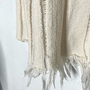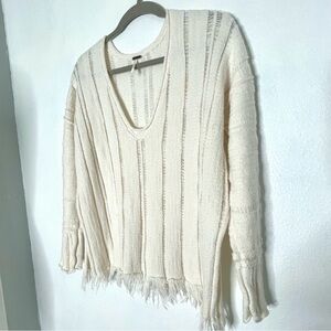 Free People Oceans Drive Cream V Neck Distressed Fringe Hem Sweater. Size Small