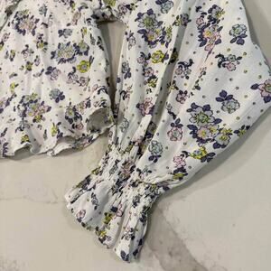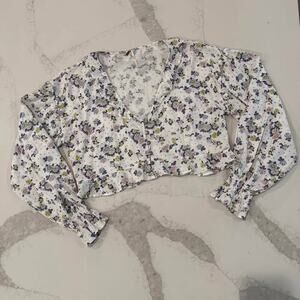 Free People Secret Garden CropTop Ruffled VNeck Womens Small White/Purple Floral