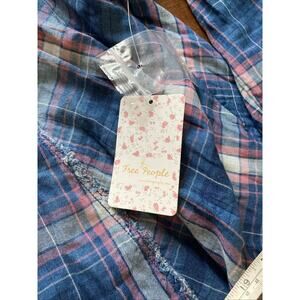 We the Free People Seeking Starlight Top Sz M NWT Blue Plaid Cotton Raw Hem