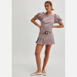 Free People Sevi Plaid Mini Dress Puff Sleeve Grey and Pink Combo Size L NWOT