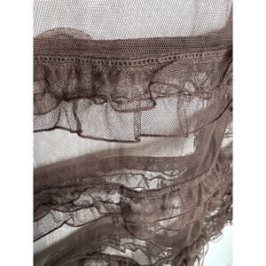 Free People Sheer Brown Tulle Ruffle Mini sexy Dress with Bow Neck Tie large