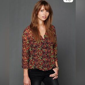 Free People Sheer Floral Print Buttondown Top- Size Medium