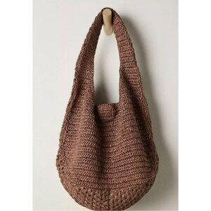 Free People Sintra Straw Tote Shoulder Handbag Chocolate NWT