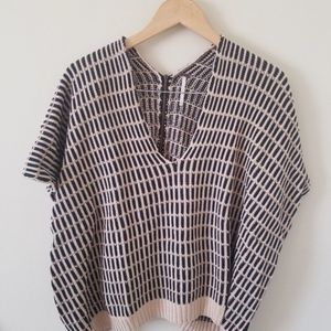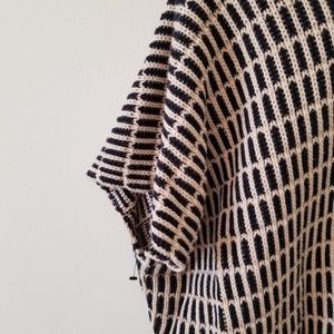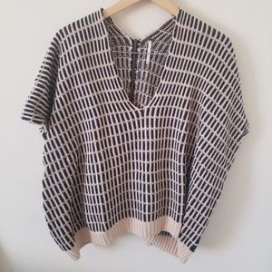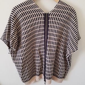 The zipper is intact and works - V-neck - Elbow dolman sleeves - Exposed back zip closure - Ribbed hem - Chunky patterned knit construction - Boxy fit -