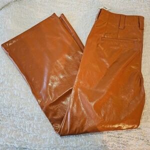 Free People Star Crossed Lovers PatentLeather Straight Leg Pants Brown Sz 8