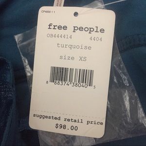 Free People for Urban Outfitters. The tag says the color is turquoise but some would consider it more teal. It has metallic threads for a little shimmer. Removable, adjustable straps and silicone around the top to prevent slippage. Flattering empire waist. Retails for $98. Measurements: bust 14”, waist 12”, length 32”. Brand new with tags!