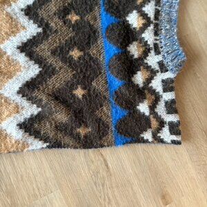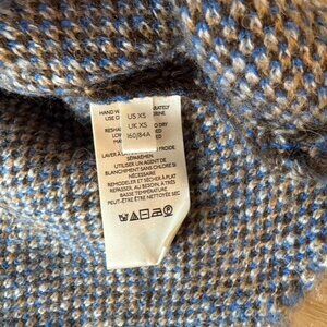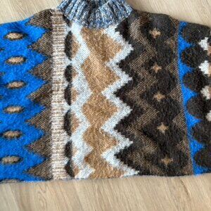 Brown & blue alpaca wool blend silhouette poncho.